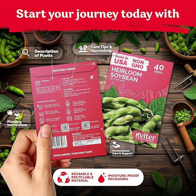 • Fast Germination: soybean seeds for planting sprout in 5-10 days at 70-90 °F, letting home garden beginners harvest tender edamame in just 80 days while heirloom seeds thrive in loamy soil.