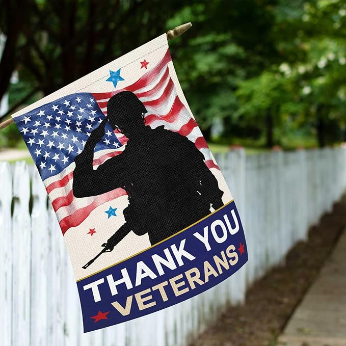 Heyfibro Thank You Veterans Garden Flag 28x40 Inch Double Sided, Soldiers Heroes Thank You Patriotic USA Yard Banner for Independence Veterans Day Outdoor House Decorations (ONLY FLAG)