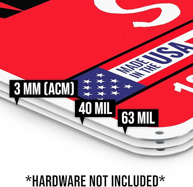 • PREMIUM QUALITY - Crafted from durable all-aluminum material, each sign is built to last with your choice of thickness, 0.40 mm or 0.63 mm. Customize it further with options like rounded corners, 2 or 4 pre-drilled holes, and a finish that fits your needs perfectly.