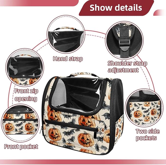 Dog Carrier Backpack for Small Pets - Cat & Dog Backpack for Hiking, Camping or Travel, Pumpkin Helloween0
