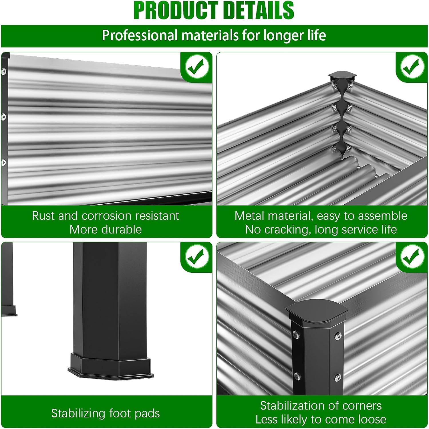 • 【Distinctive Design】-Outdoor elevated garden beds, our custom design style features galvanized sheet metal on the top, a stainless steel frame on the middle base, and the lower four corners are made of heavy-duty steel with a black powder-coated finish,This combination exceeds the lifespan of wooden products and ensures excellent rust resistance to keep the garden bed in the best condition for a long time.