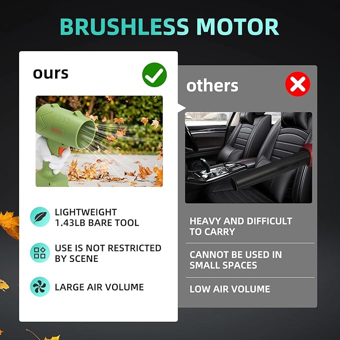 Cordless Leaf Blower Dust Cleaner Handheld Electric Air Duster Jet Dry Mini Blower Turbo Fan for Cars Computer Lawn Care, Patio Cleaning by 2PCS Batteries (Green)