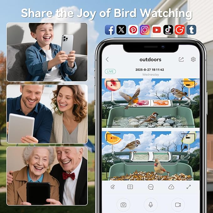 - IDEAL GIFTS FOR BIRDS LOVER - Birdfeeder and bath built-in dual cameras allow you to enjoy unprecedented natural experiences, the video bird feeder can be used by 4 users, other users download the same app, the host user can share it within the app. Share fun with family and friends, give them as a gifts. Best gift for Dad, Mom for Birthday, Christmas, Mother's Day, Father's Day