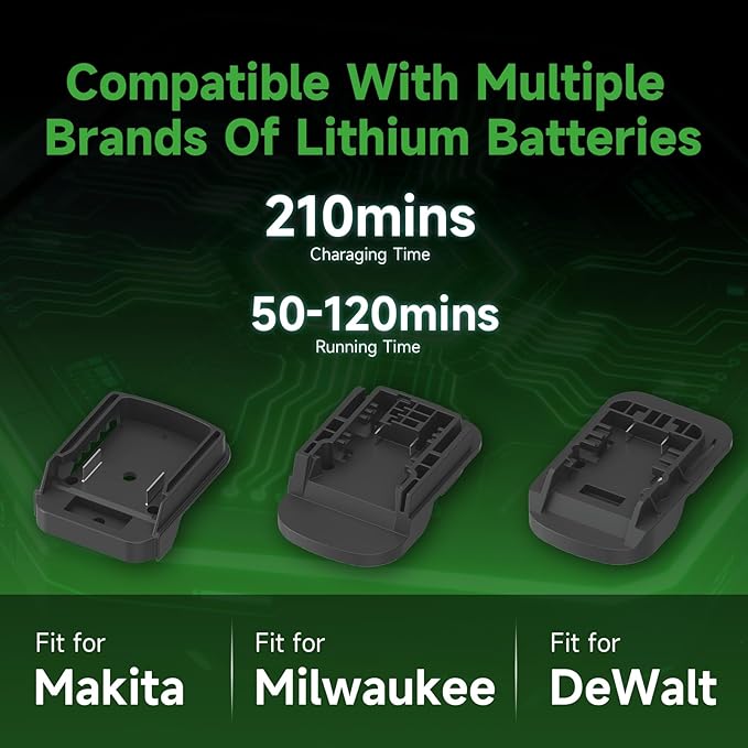 • Wide Battery Compatibility with Adapters: Due to the strict transportation terms. We can not include any Li-ion battery. Design with battery adapters fit for Makita/Dewalt/Milwaukee, making full use of your existing tools’ batteries while saving extra costs. (Adapters sold separately)
