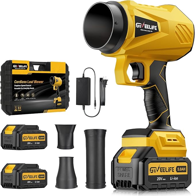 GEVEELIFE 2025 Upgraded Leaf Blower Cordless-800000 RPM Turbo Jet Blower with 2×5.0Ah Batteries & Fast Charger,Handheld Blower for Patio,Leaves, Lawn, Yard, Dust,Snow,Car Cleaning