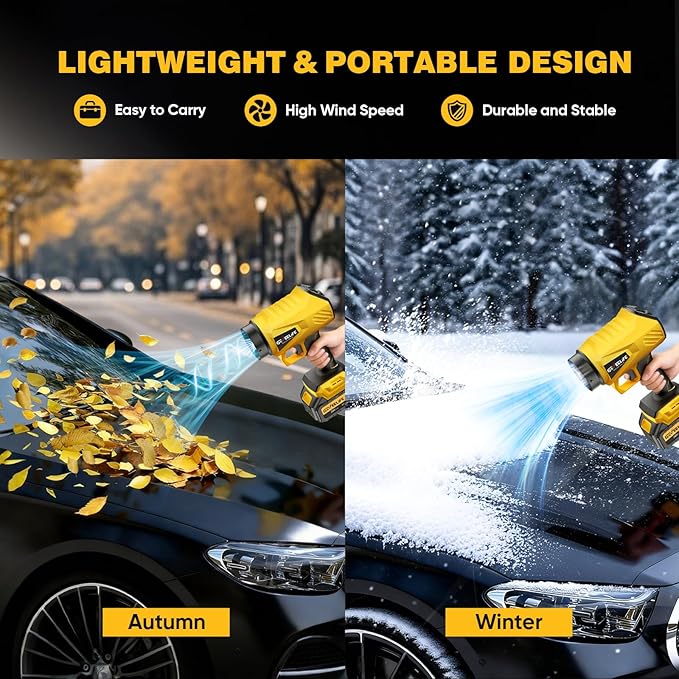• 【Versatile & Adjustable】Tackle a variety of tasks with infinitely variable speed control. Perfect for cleaning indoor corners, sofas, keyboards, and vents, as well as outdoor leaves, dust, or light snow. Compact and portable, it’s the ideal tool for yard work, cars, camping, and everyday home use.