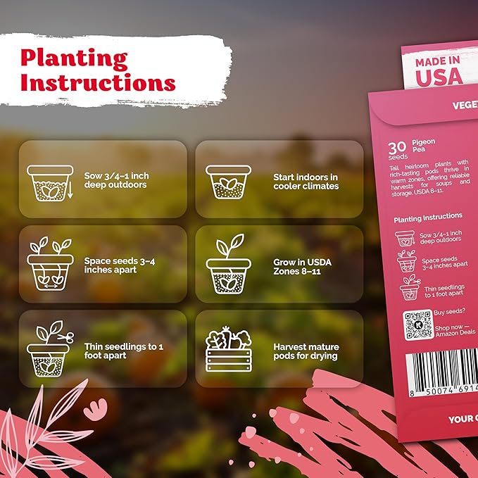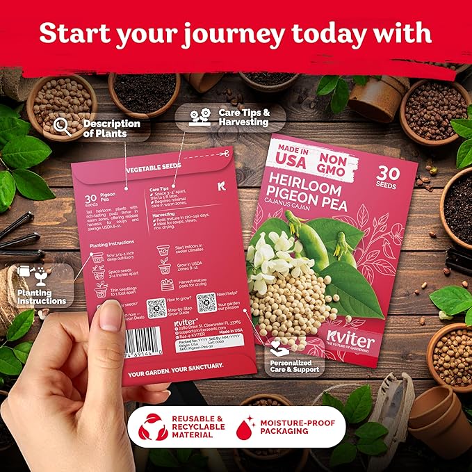 • High Germination Rate: Experience up to 90% success with pigeon peas (gandules). Grow these heirloom seeds in USDA zones 8–11, perfect for container gardens or urban/yard spaces.