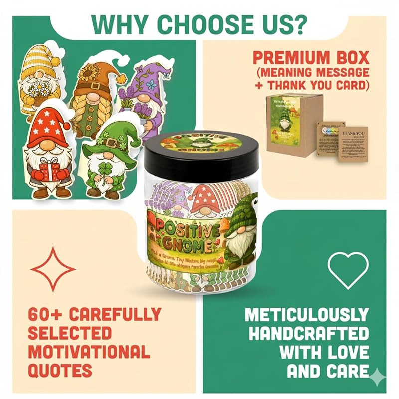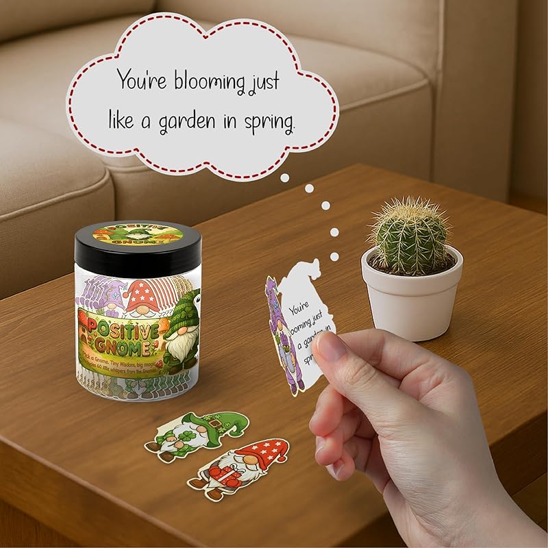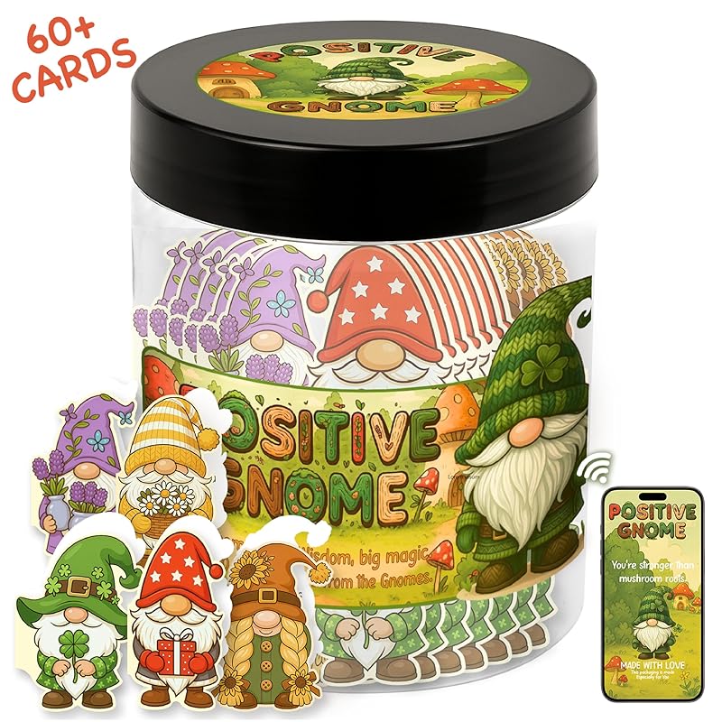 • ๐Ÿง™ Emotional Support & Positivity: Features 60 affirmation cards offering emotional support gnome inspiration, helping with stress relief, encouragement, and mindfulness; perfect as encouragement gifts or positive gnomes jar.