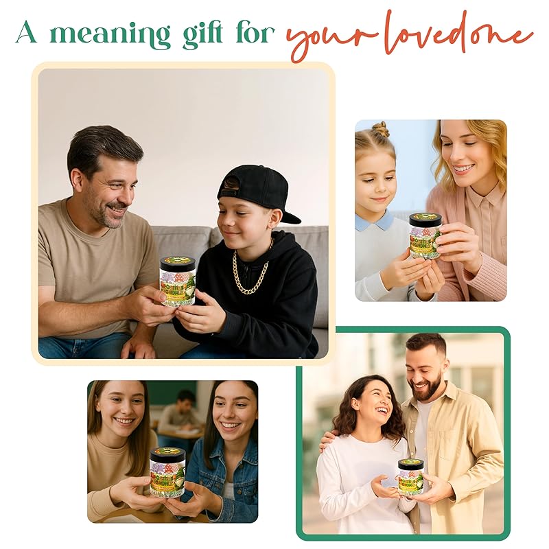 • ๐Ÿ’Ž Quality & Durability: Cards are printed on thick, fade-resistant paper; reusable jar is sturdy and decorative, making it a motivational jar and keepsake for emotional support and positivity.