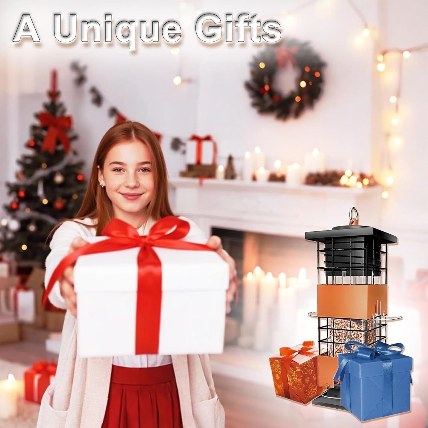 • Attractive Bird Feeders Outside Hanging: Our unique Anti Squirrel bird feeders not only keeps squirrels away, and be hung anywhere around your yard, on tree branches, poles, under the eaves, etc. to attract more wild birds such as cardinals blue jay Hummingbirds finches starlings and more to your yard, providing you, your parents and your children with the opportunity to observe birds up close and enjoy hours of bird watching fun.