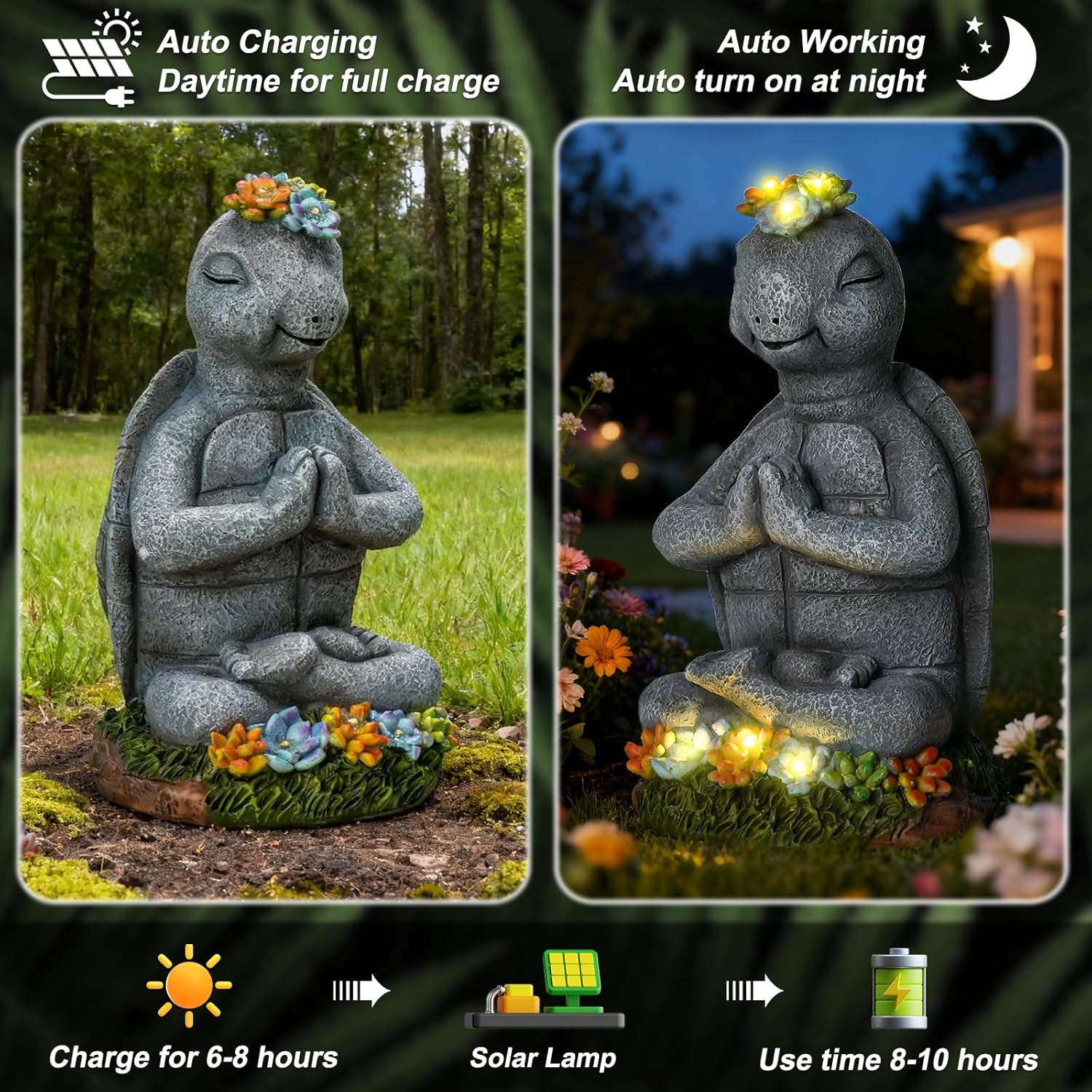 • 【Solar-Powered LED Lighting】Automatically charges during the day and illuminates at night with gentle LED flowers on the turtle’s head and base, creating a captivating ambiance for your garden, patio, or pathway.