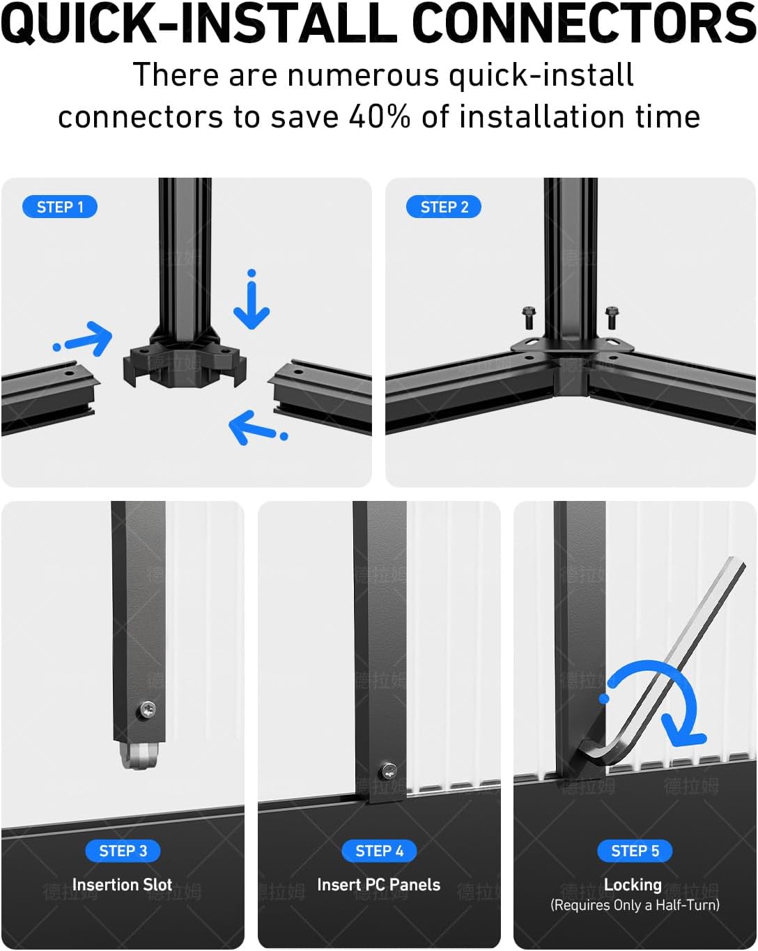 • Durable & Stable Structure-This polycarbonate greenhouse is built with a high-quality reinforced aluminum alloy frame and strengthened corners for excellent stability. Designed to handle tough outdoor conditions like strong winds, heavy rain, and snow. For added strength, you can seal the panel gaps with silicone (not included), making it a reliable green house for year-round use.