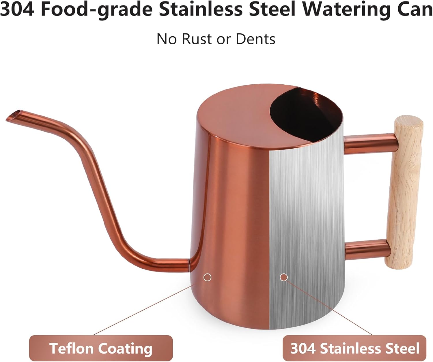 • Premium 304 Stainless Steel Material - Our watering can is made of premium 304 stainless steel The welds around the bottom of the spout and around the two points where the handle connects to the body are attached well and is powder coated, which is leakproof, rust-resistant, scratch resistant and long lasting without fading. The indoor plant watering can seems simple, but it is not, it's not just a gardening tool, but a simple and modern decoration, and well matching various home decor styles.