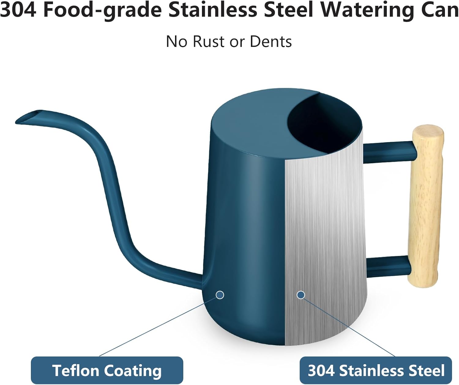 • Premium 304 Stainless Steel Material - Our watering can is made of premium 304 stainless steel The welds around the bottom of the spout and around the two points where the handle connects to the body are attached well and is powder coated, which is leakproof, rust-resistant, scratch resistant and long lasting without fading. The indoor plant watering can seems simple, but it is not, it's not just a gardening tool, but a simple and modern decoration, and well matching various home decor styles.