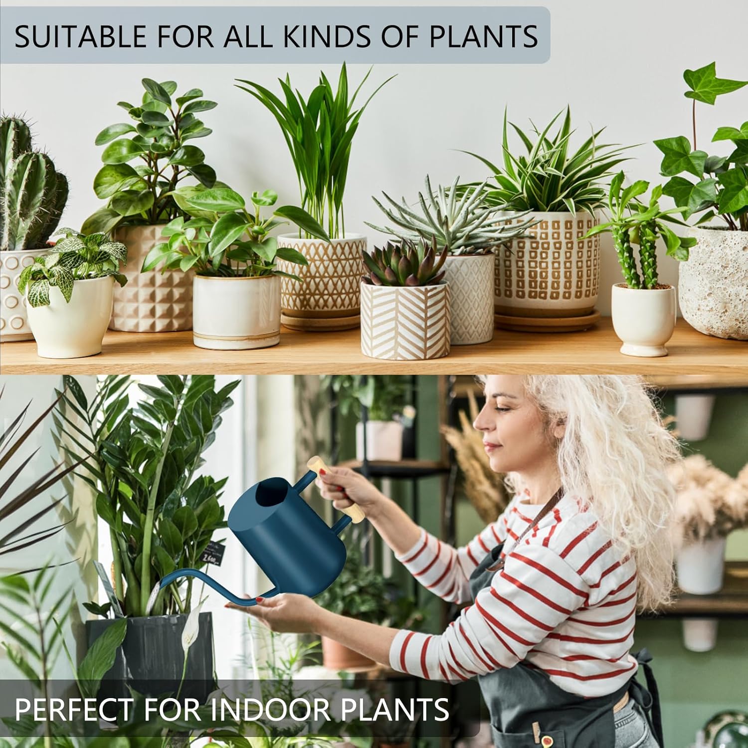 • Decorative & Functional - Our watering can is not limited to just indoor plants, it can be used for outdoor gardening. Small watering can has a variety of color choices. Just perfect for watering small house plants, hanging plants, tabletop bonsai, potted plants, small cactus. The modern, simple design fits any decor and looks great on display. With a exquisite and light watering can body and real wooden handle, this watering pot serves as a decoration as well