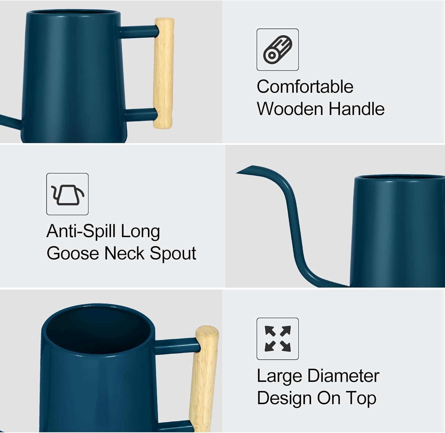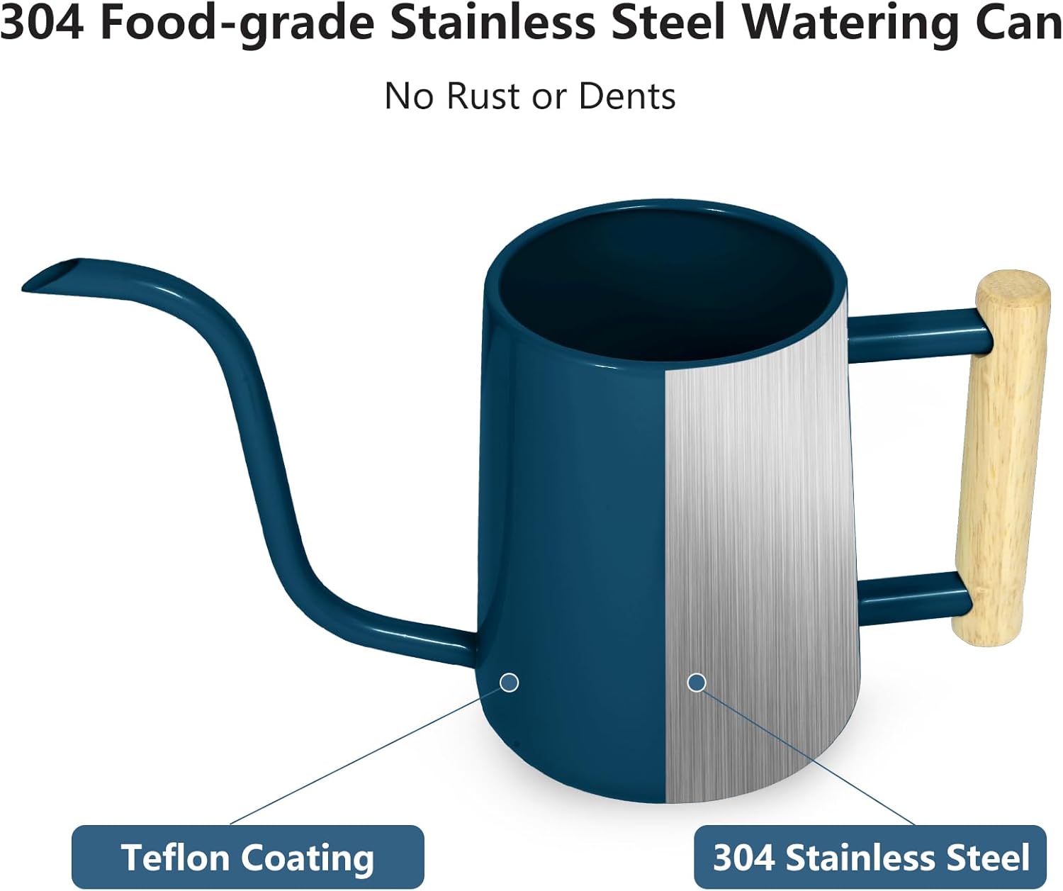 Watering Can Indoor Plants, 35 oz/1000 ml Metal Stainless Steel Watering Can Pot with Long Spout for Indoor House Plants Bonsai Outdoor Garden Flower Decorative (Dark Blue)