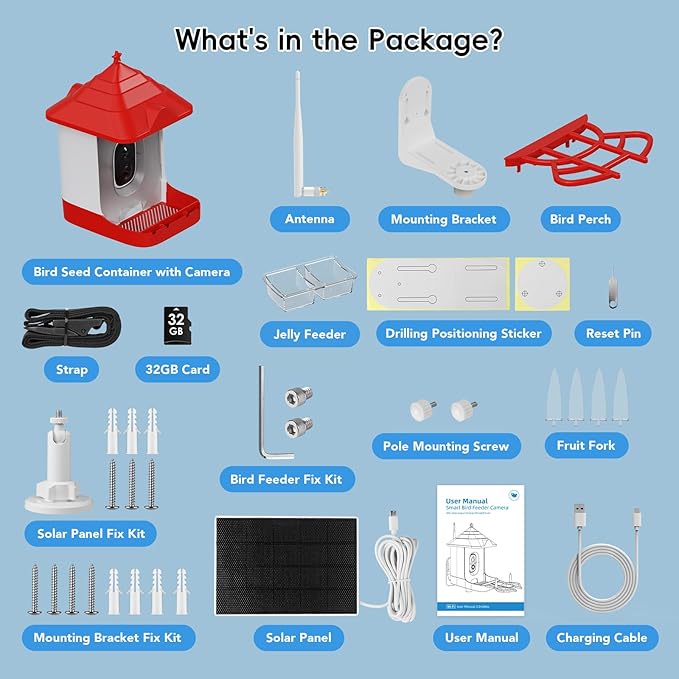 - 【Ideal gift for Bird Lovers】This smart bird feeder camera is designed for bird lovers, parents, grandparents, families, and nature-loving kids. It comes in an elegant presentation-ready box—perfect for holiday surprises, birthday celebrations, or thanking special people. Transform birdwatching moments into cherished memories.