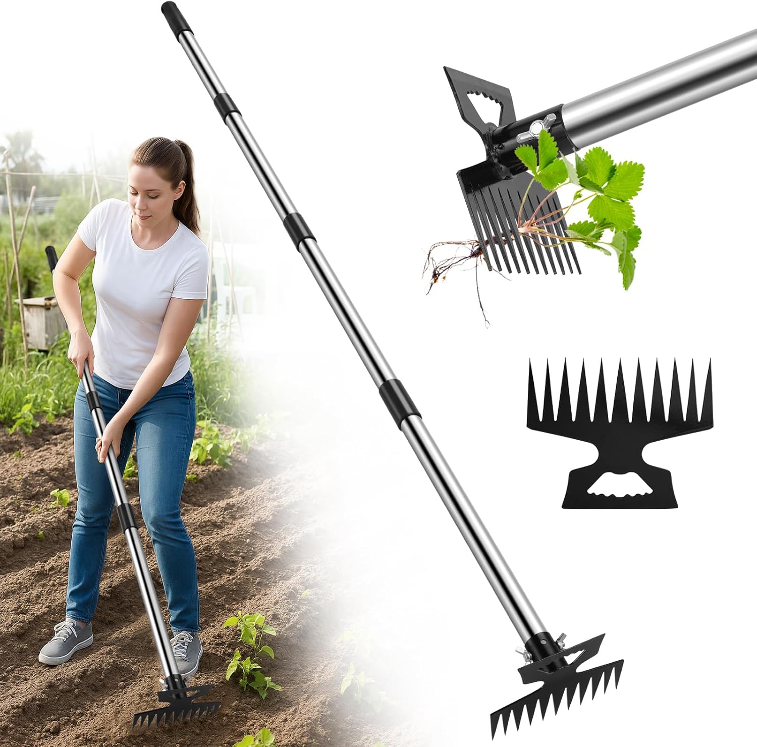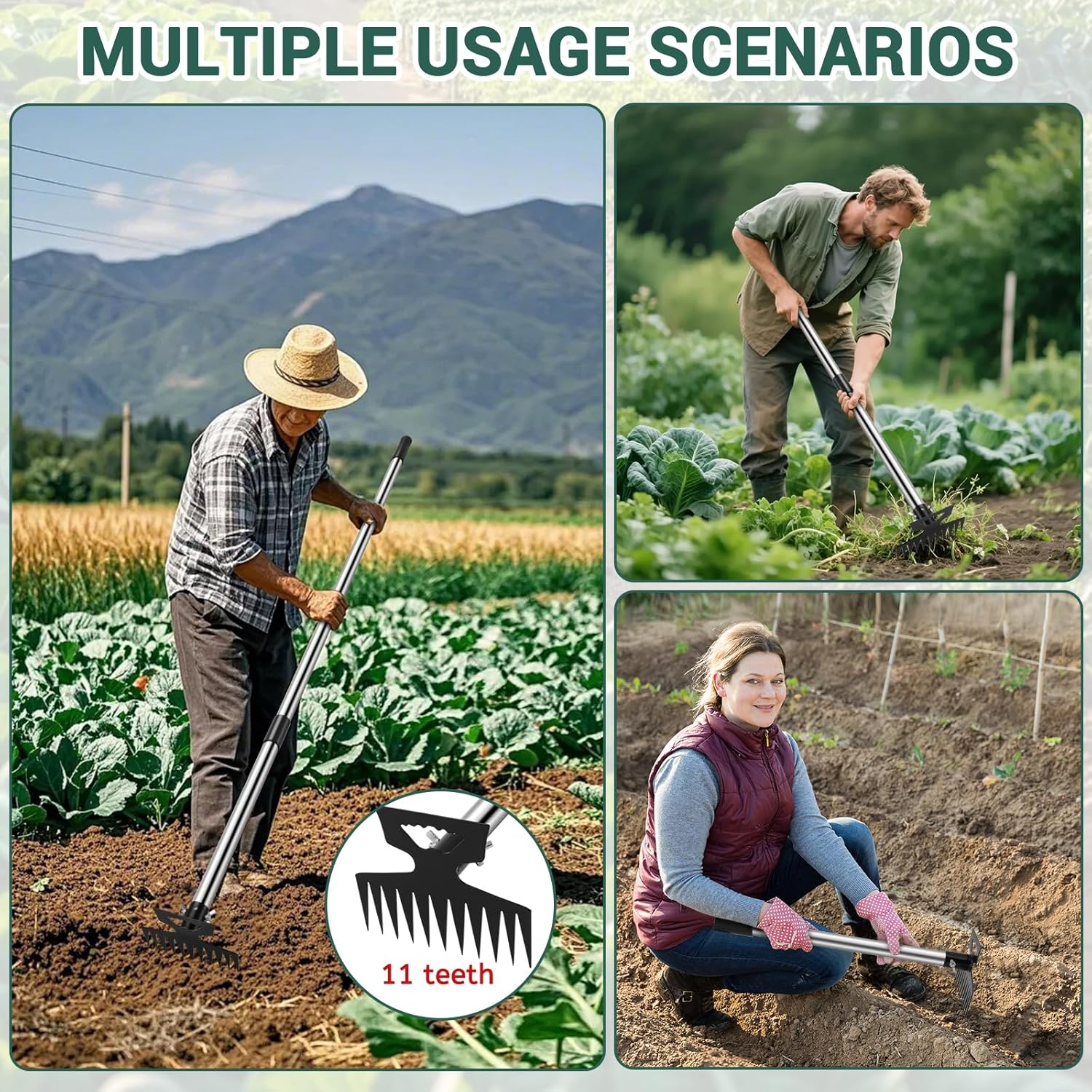 • Versatile Stand Up Weed Puller Tool: This 2 in 1 weeding rake and garden hoe great for pulling crabgrass, dandelions, and other weeds, as well as loosening soil, digging, seeding, planting. Perfect for use in garden, yard, lawn, patio and farm