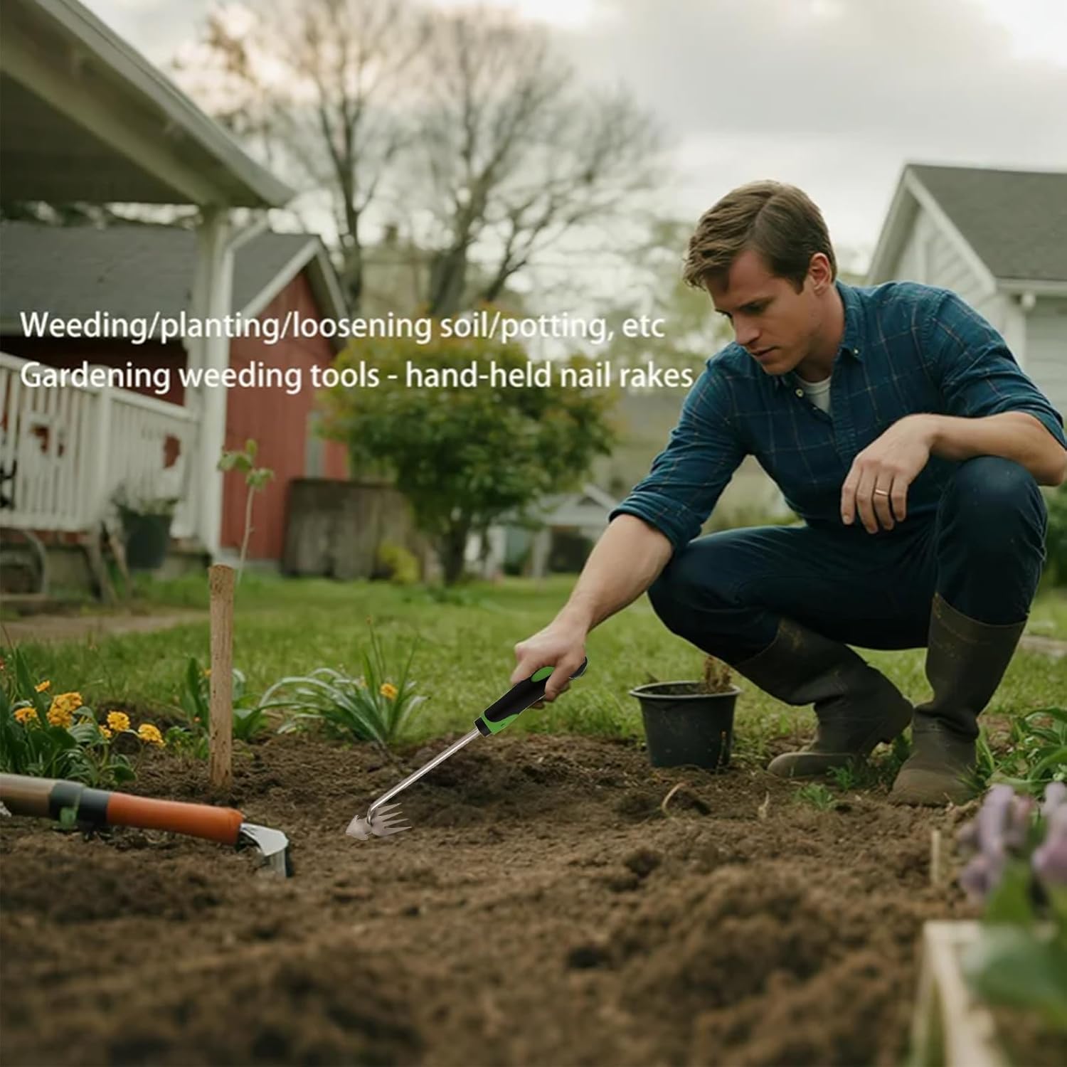 • Weeding tool: There is a small groove on the top that can accurately remove the roots of the weed, making it easy to remove. The rubber handle is more comfortable and labor-saving, suitable for courtyards, gardens, potted plants, etc
