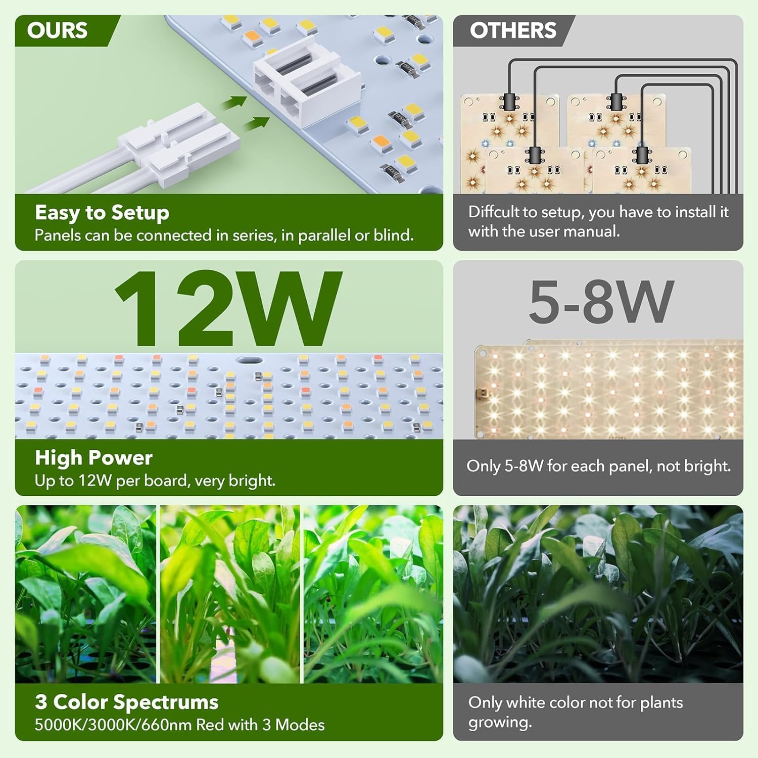 Full Spectrum Grow Lights, 100W Plant Grow Lights for Indoor Plants with Daisy Chain Function, Sunlike Spectrum,1920 LEDs and 4/8/12/16/20H Timer for Seed Starting(Pack10)