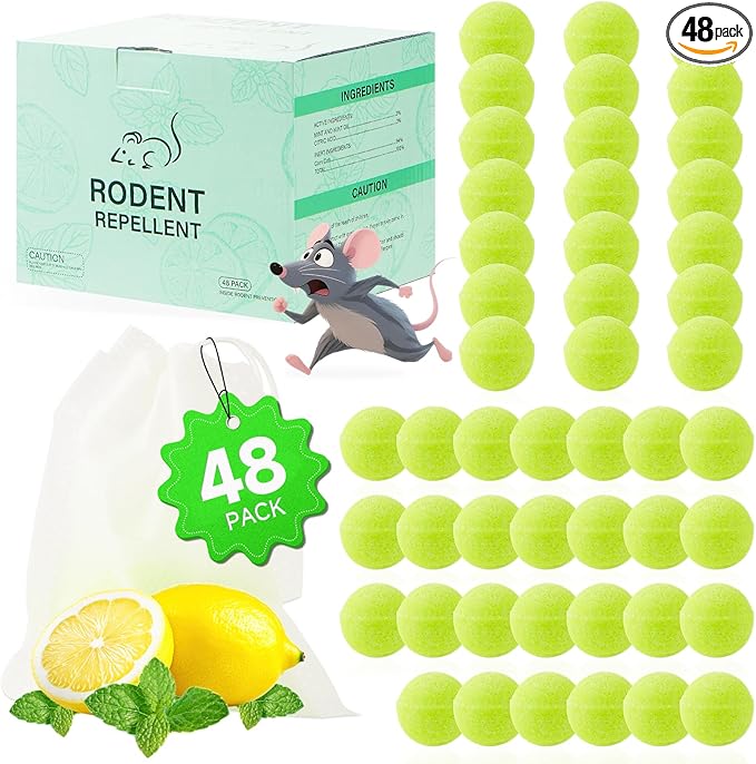 Pest Rodent Repellent, 48 Pack Peppermint Oil Repellent for Mouse, Roach, Rodent, Mice, Rats, Spider, Ant, Pest Control Indoor & Outdoor Use, Natural Mouse Deterrent Replace Traps Family & Pet Safe