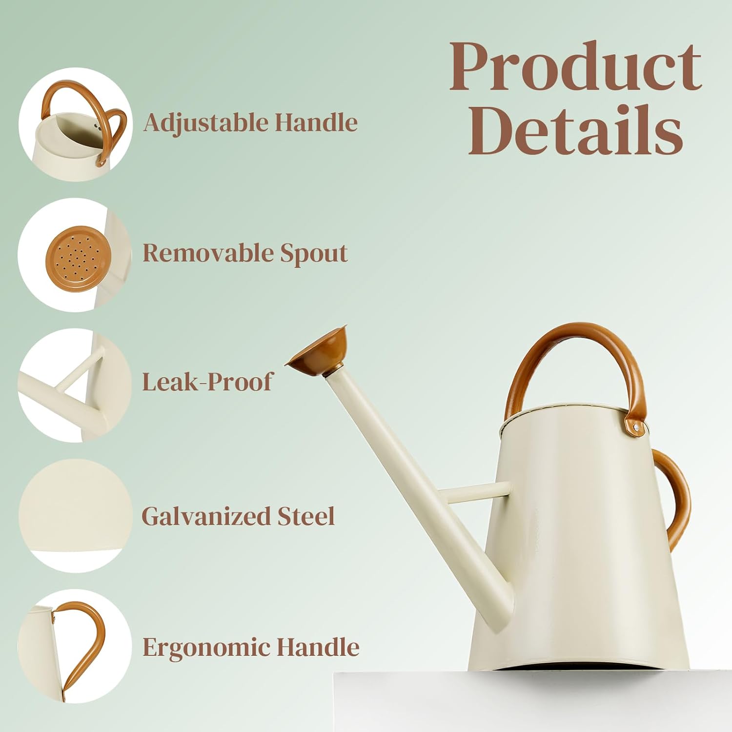 • Removable spout design: Features a convenient removable spout that allows for easy cleaning and storage. This durable galvanized metal watering can features a detachable spout that lets you switch between gentle shower watering and direct water flow-perfect for large outdoor plants among all watering cans.