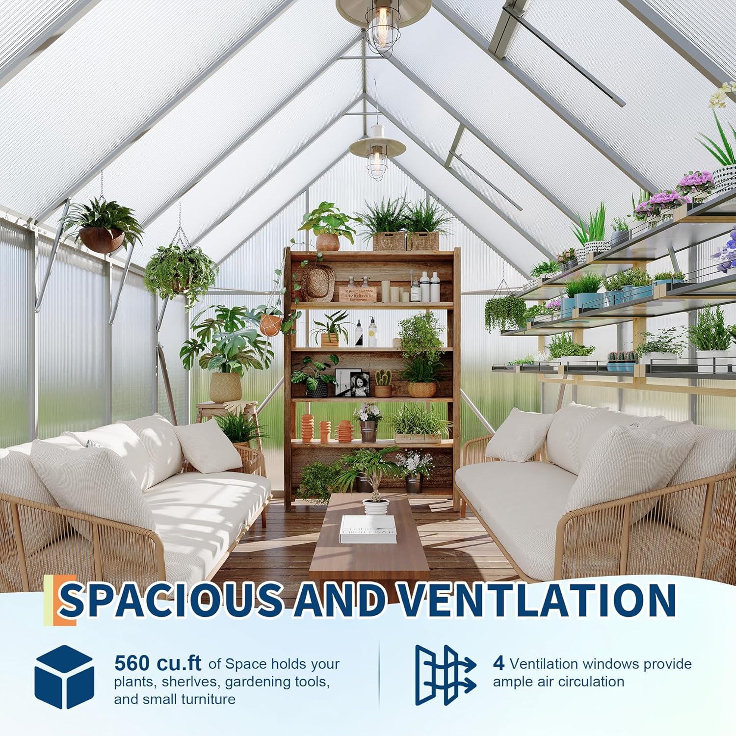 • Versatile for All Seasons & Quick Setup Structure - These backyard friendly structures are perfect for cultivating a variety of vegetables, plants, and herbs, with ample space for gardening tasks. Designed for simplicity with a quick install system and slide in panels, our greenhouse, which has been perfected through over 500 tests, boosts setup speed by 40% and enhances stability by 35%. This polycarbonate greenhouse for outdoors features a simplified assembly process with innovative quick conn