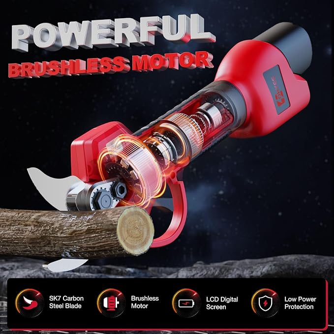 • Sharp and Powerful: Experience unmatched performance with our newest robust brushless motor and premium Chrome Stainless Steel blade. With a maximum cutting diameter of 1.2IN, this machine outshines any other on the market. Effortlessly get your job pruning job done!
