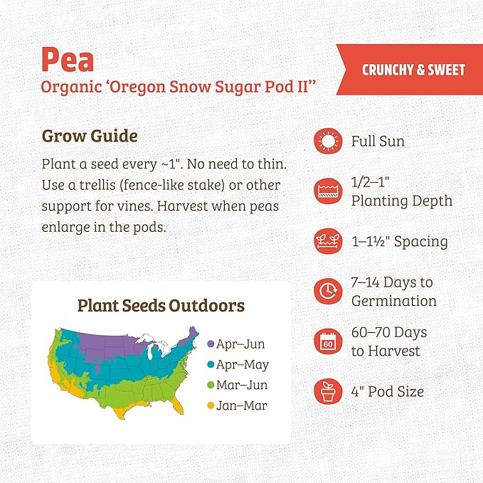 • Color : 2ct Seed Packet - Pea 'Oregon Snow Sugar Pod II'