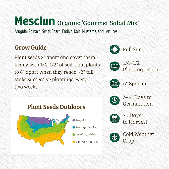 • Color : 2ct Seed Packet - Mesclun 'Mesclun Mix'