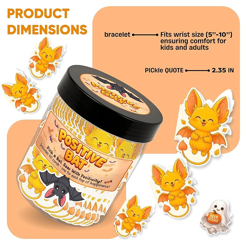 • ๐Ÿฆ‡ Emotional Support & Positivity: Includes 60 affirmation cards with emotional support bat themes, designed for stress relief and encouragement; perfect as positive bat jar or Halloween gifts for coworkers.