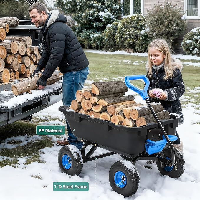 800lb Garden Dump Cart,Utility Wagon Wheelbarrows with Quick-Release System&4 Pneumatic Tires,Heavy Duty Yard Dump Wagon with Steel Frame for Yard, Farm, Garden and Holiday Hauling (Blue)