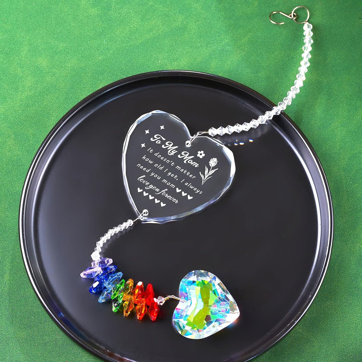 • High-Quality Mom Memorial Gifts : The shining hanging suncatcher is made of premium clear and well-cut K9 crystals. The Heart-shaped crystal prisms combined with chains are colorful and shining. Each crystal presents a beautiful and unique color. They will create the most beautiful reflections when the sunlight or any other kind of light hits them.