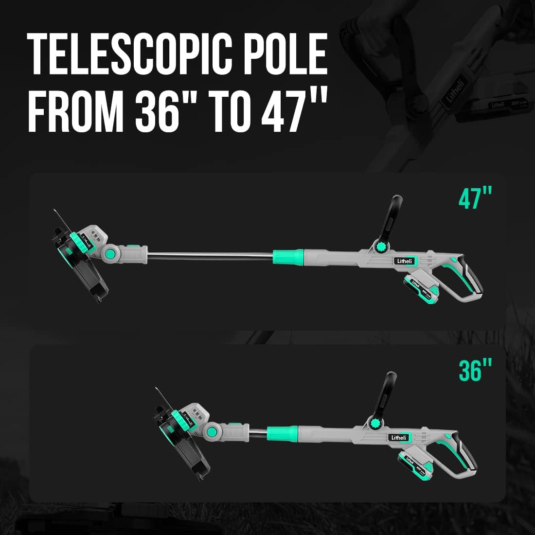 • Telescopic Shaft with Tool-Free Adjustment – Extendable handle adjusts from 36" to 47" to suit different user heights, offering improved control and comfort without tools.