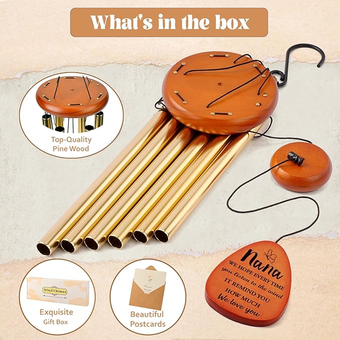 • 【Tranquility and Relaxation】The superior craftsmanship of our wind chimes makes it an exquisite decoration. Suitable for both indoor and outdoor settings. The sound of the wind chime is clear and melodious, with a natural rhythm, Soothing and Long-Lasting Melody. It will be a meaningful and thoughtful nana gift that combines durability with love.