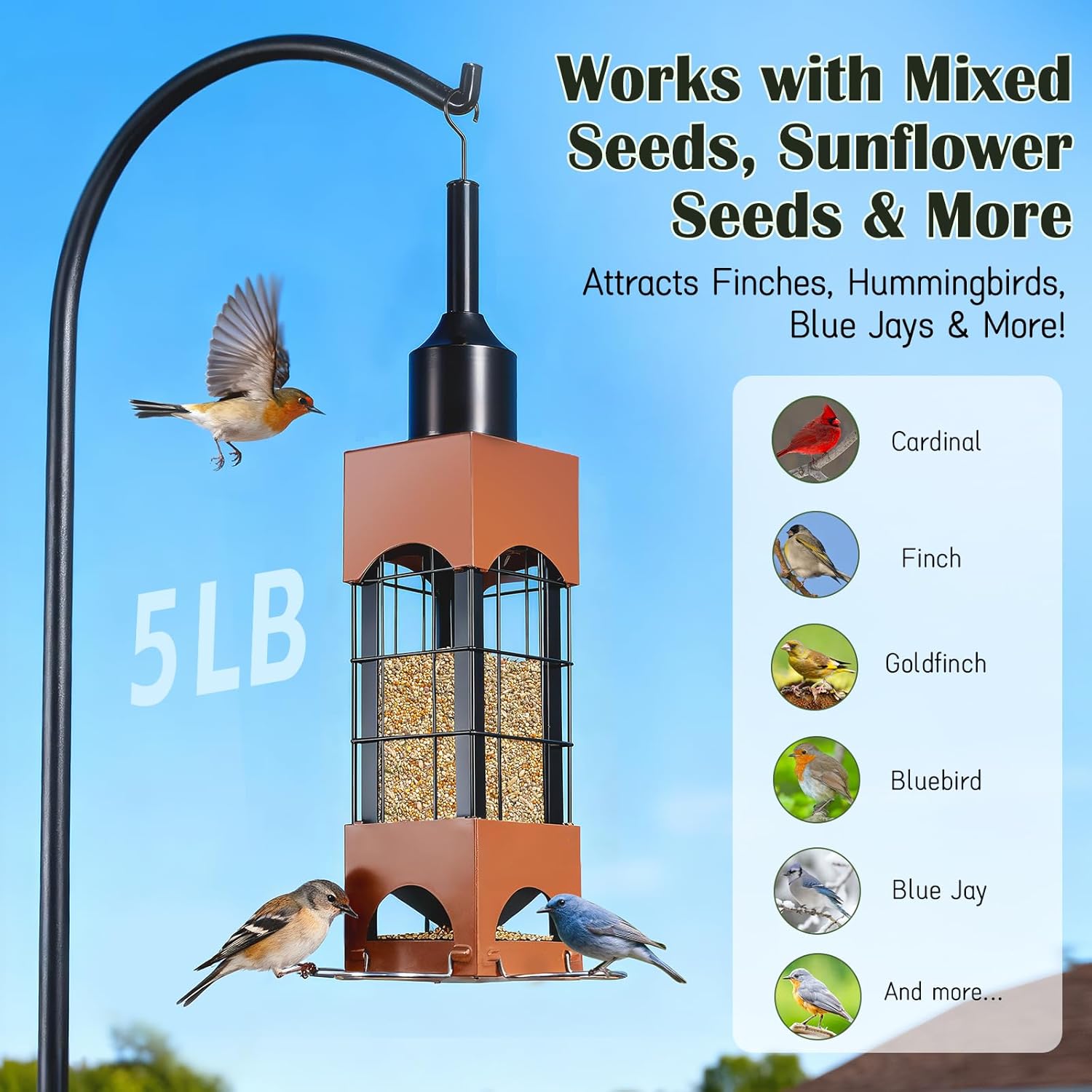 Squirrel Proof Bird Feeders for Outdoors with Weight-Activated, 5LB Metal Hanging Bird Feeders for Outside, Large Wild Feeders for Cardinals, Chickadees, Durable Backyard Feeders