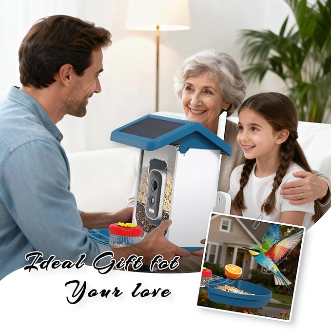 Smart Bird Feeder with Camera Solar Powered, 4K HD Video Bird House, AI Bird Species Identification, Live Stream & Night Vision, Auto-Capture & Notify, Weatherproof Design, Ideal Gifts for Lover