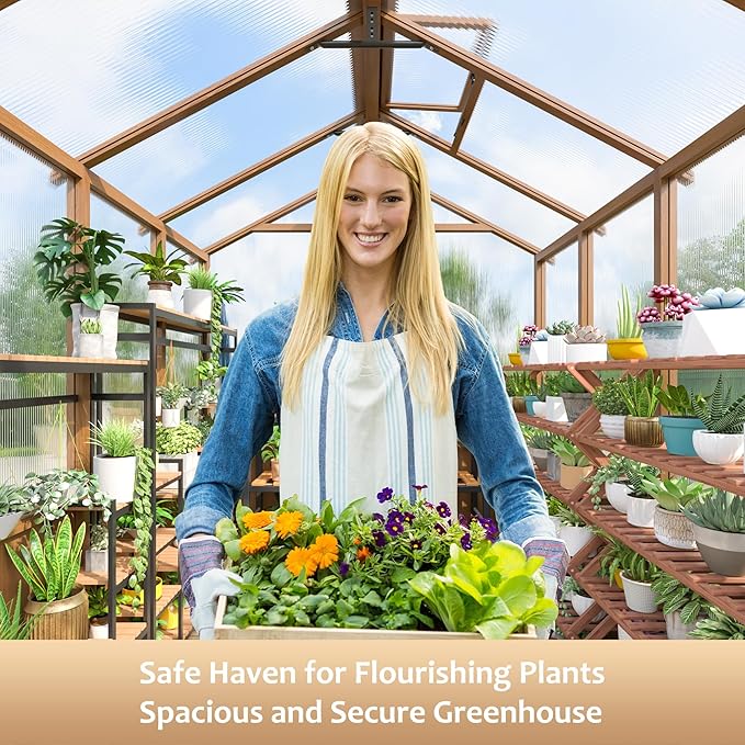 • 【Quick and Easy Assembly】All components of the Besteagle wooden outdoor greenhouse are clearly labelled, accompanied by detailed instructions and all necessary tools, saving time and effort. The innovative slide-in panel system enables installation 20% faster than standard greenhouses while enhancing stability by 15%.