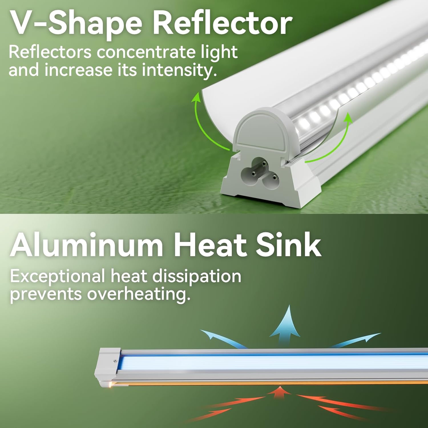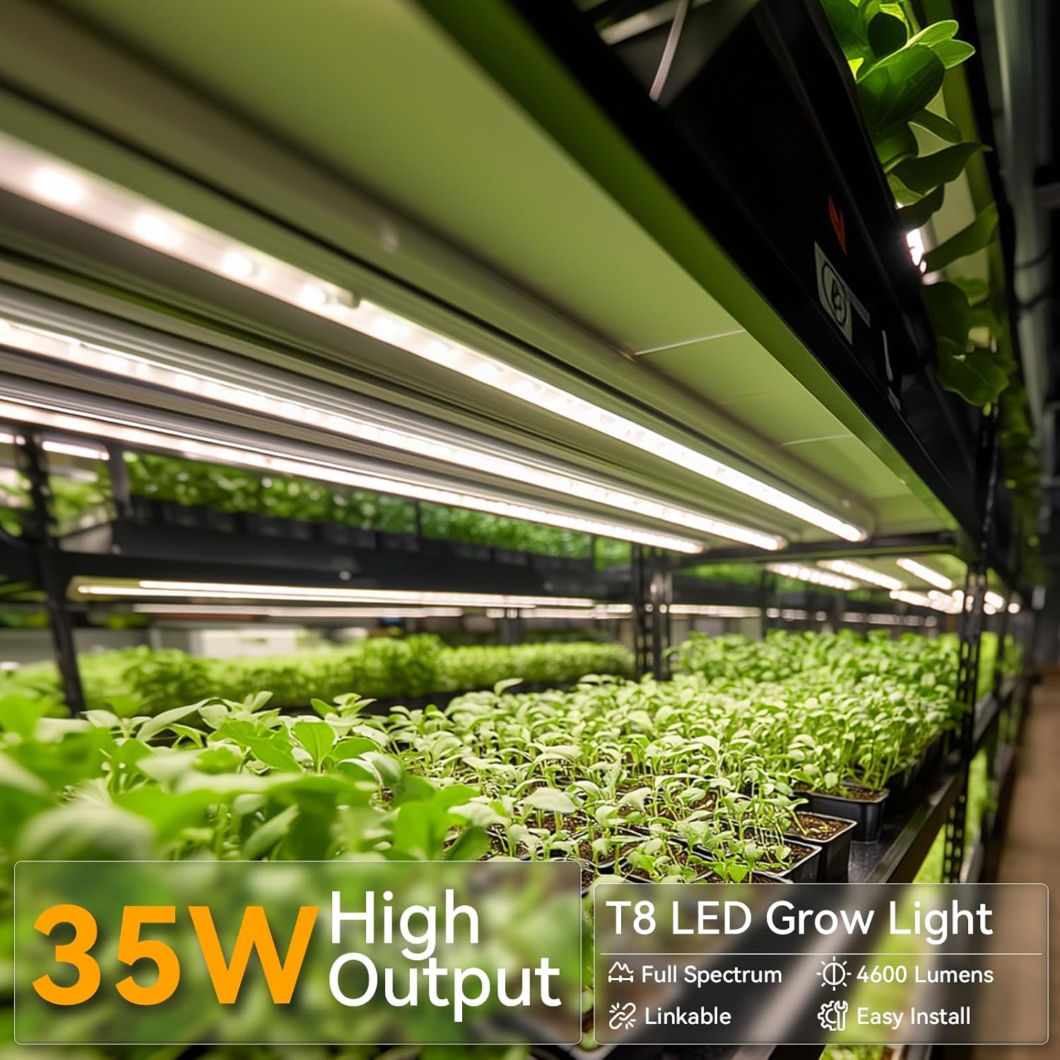 • 【5000K Daylight Full Spectrum Grow Lights】T8 plant lights provide indoor plants with full-spectrum sunlight replacement.They utilize a blend of red, blue, and green wavelengths to deliver an optimal spectrum for plant growth. Suitable for every growth stage—from seeding, vegetative growth, to flowering and fruiting.