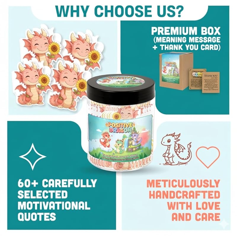 • ๐Ÿ‰Encouragement & Support โ€“ This Positive Dragon Jar includes 60 affirmation cards that provide encouragement, mindfulness, and emotional support like a guardian dragon in daily life.