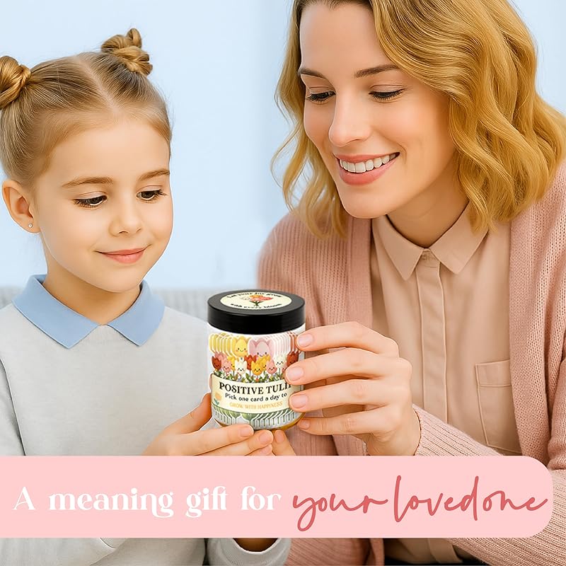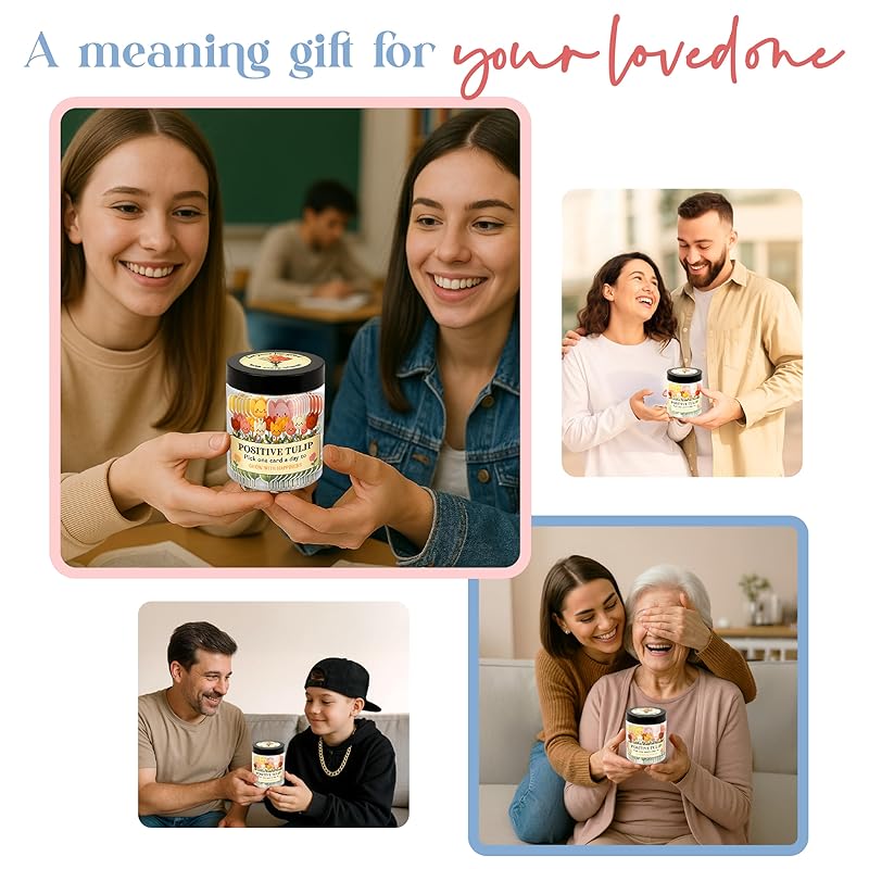• ๐ŸŒทDaily Positivity & Stress Relief โ€“ This Positive Tulip Jar includes 60 affirmation cards designed to bring emotional support, stress relief, and encouragement as inspirational gifts.
