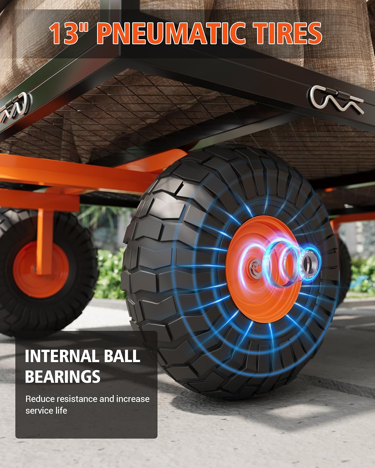 GarveeLife Heavy Duty Steel Garden Cart, 1200 LBS Capacity 3 in 1 Pullable Garden Wagon with 13 in Wheels, for Gardening Soil, Tools, and Plant Transport
