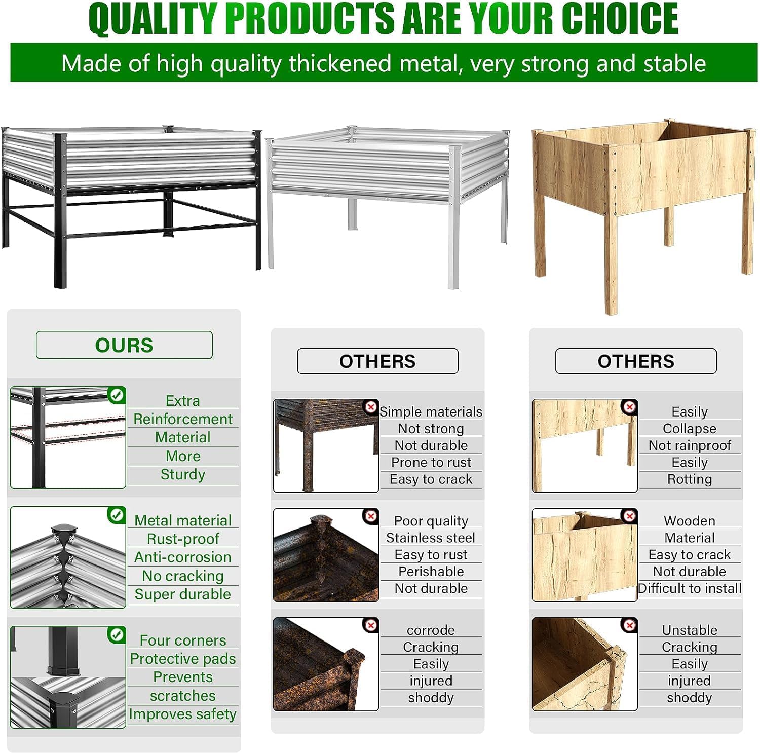 • 【Distinctive Design】-Outdoor elevated garden beds, our custom design style features galvanized sheet metal on the top, a stainless steel frame on the middle base, and the lower four corners are made of heavy-duty steel with a black powder-coated finish,This combination exceeds the lifespan of wooden products and ensures excellent rust resistance to keep the garden bed in the best condition for a long time.