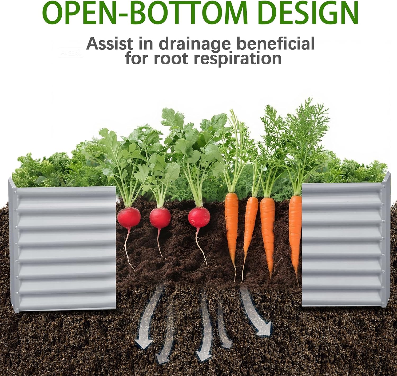 • Large volume: Our large metal raised garden boxes of several specifications have a planting volume of 8ft×4ft×2ft. The box with 24 inches deep is very suitable for planting beans, broccoli and other medium to deep root plants