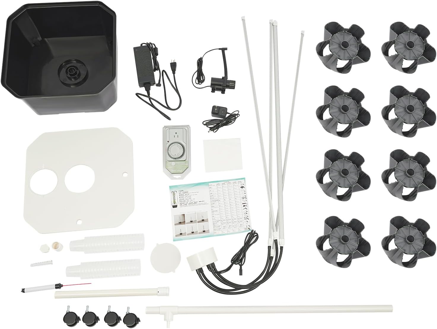 • 【AUTOMATED OPERATION & USER-FRIENDLY CONTROLS】The system runs automatically once connected to power and water, with a pump cycle of 1-minute ON / 5-minute OFF to optimize root health and resource use. A clear water level gauge enables easy monitoring, and full-spectrum LED lights support photosynthesis, suitable for all grower levels.