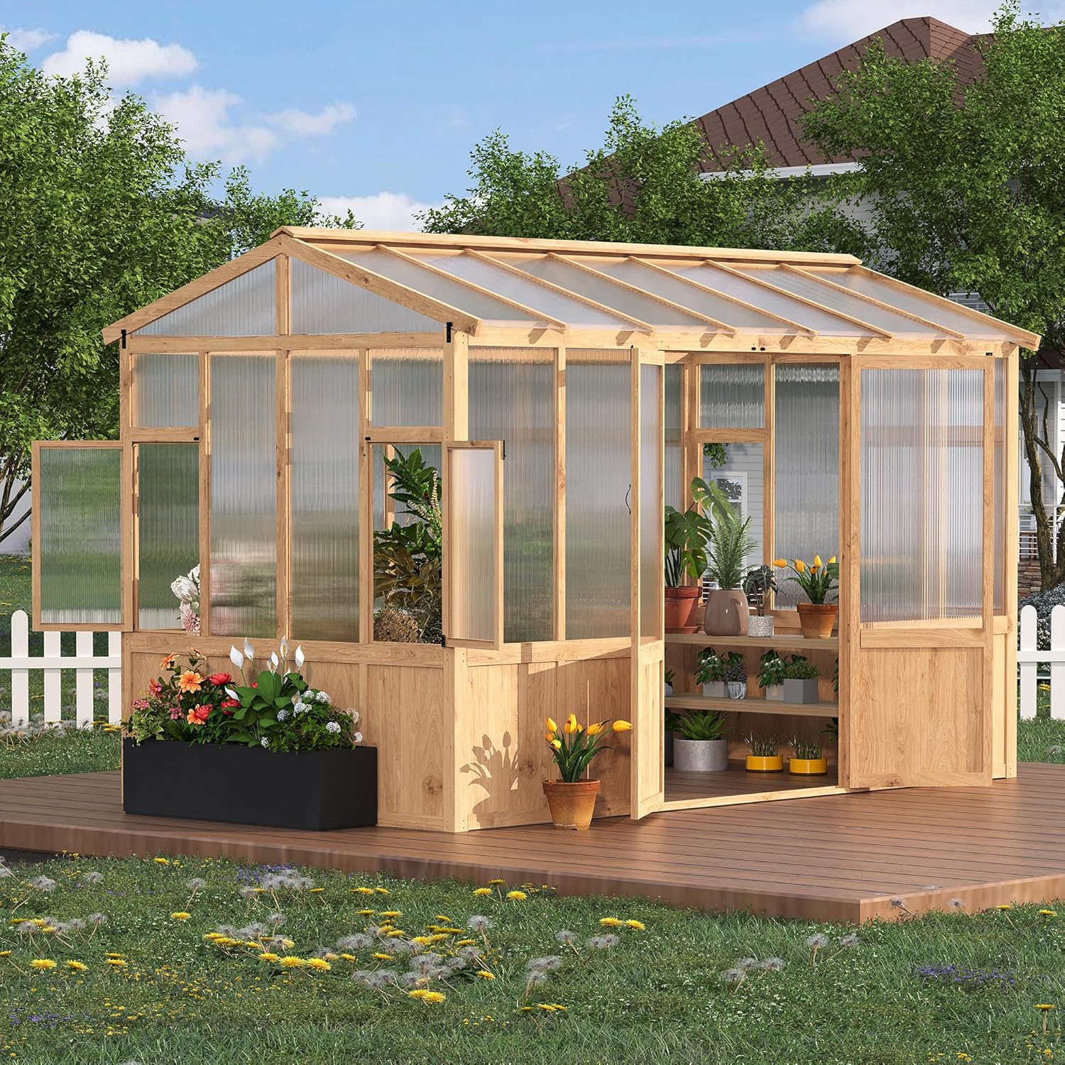 8x12 ft Wooden Greenhouse for Outdoor - Heavy Duty Walk-in Green House Kit with 6 mm Polycarbonate,Ventilated Window & Lockable Door for Backyard,Patio,Lawn
