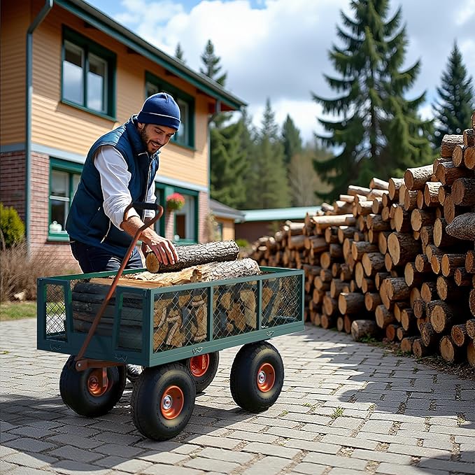 • VERSATILE FOR ANY TASK: Ideal for transporting soil, rocks, firewood, tools, and more—whether you’re gardening, landscaping, or tackling home projects. Let the cart take the strain off your back and simplify heavy lifting.
