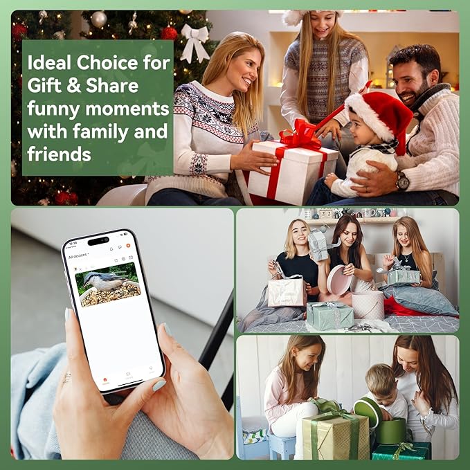 • 【AI Intelligent Bird Recognition & Real Time Notification】Advanced birdwatching with this smart feeder camera, utilizing AI recognition technology to identify over 12,000 bird species; Bird feeder camera automatically captures birds as they arrive, and instantly sends high-resolution snapshots to your phone; It is ideal for bird watching camera enthusiasts