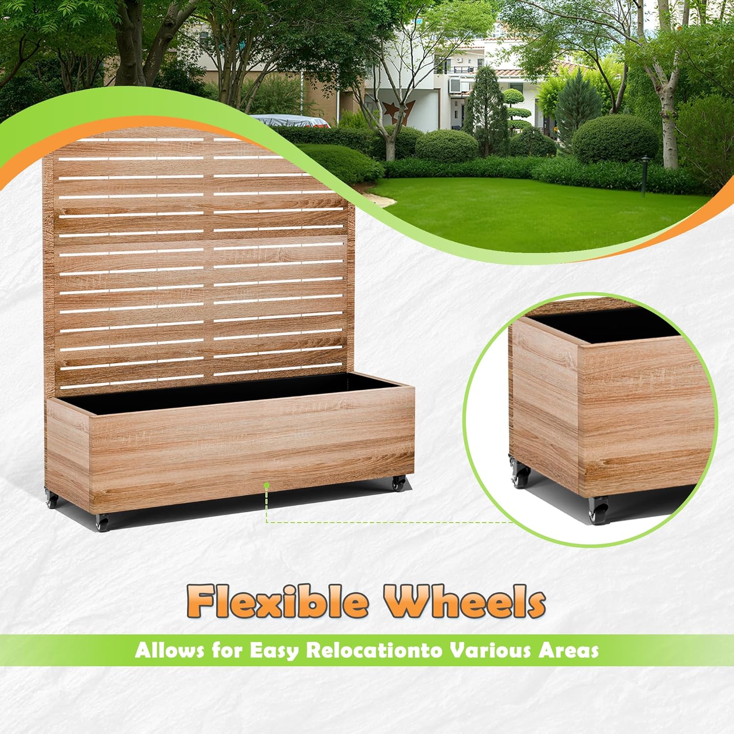 • Smooth-Rolling Wheels: Equipped with four smooth-gliding wheels, this garden bed can be moved effortlessly to follow the sun or refresh your patio layout. Whether you're shifting it for better light or seasonal changes, the garden bed rolls with ease and flexibility.