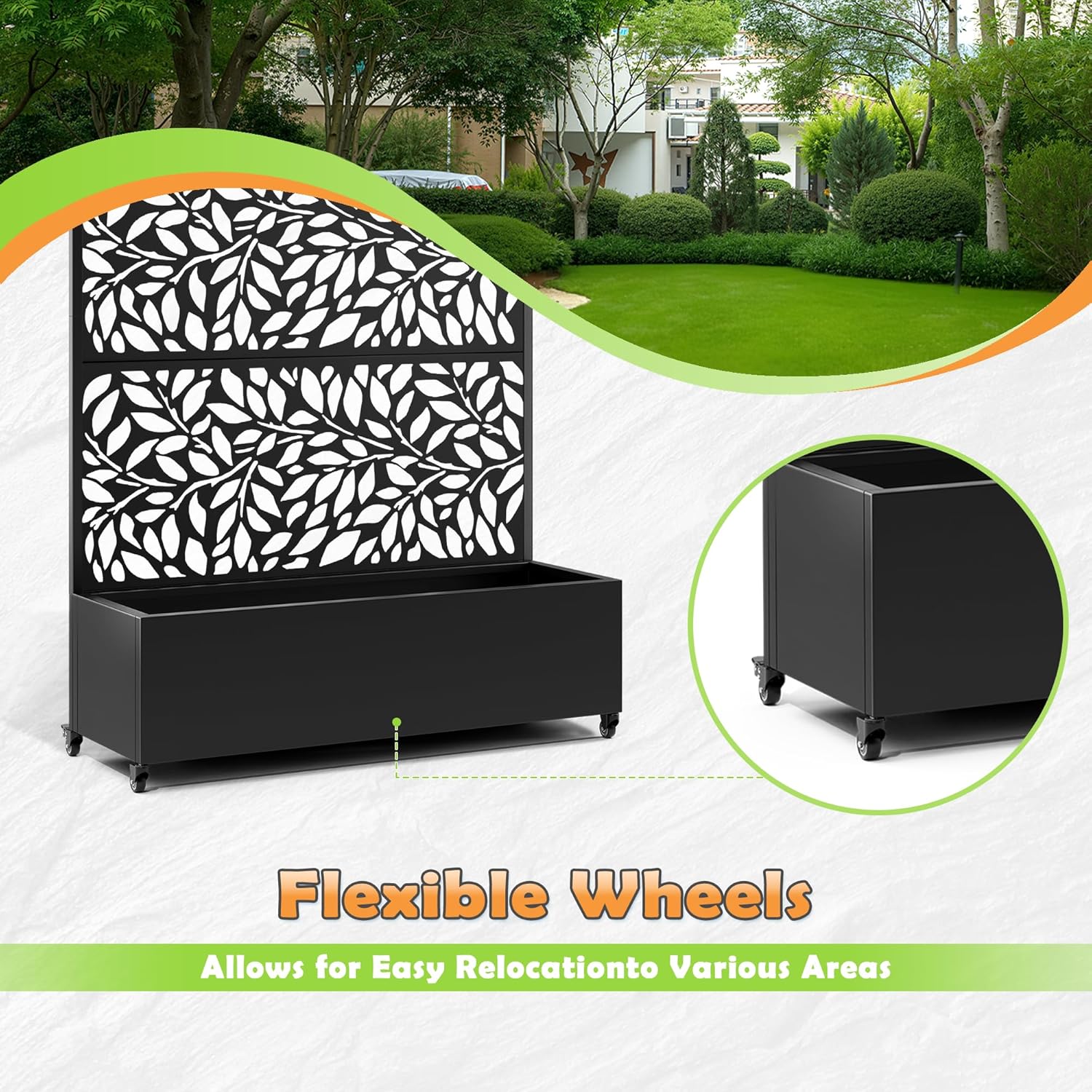 Metal Raised Garden Bed with Trellis, 2 in 1 Trellis with Planter Box & Privacy Screen for Climbing Plants, Vine, Outdoor Standing Flower Beds with Drainage Holes,47.2" L x 16.7" W x 70.8" H,(Black)
